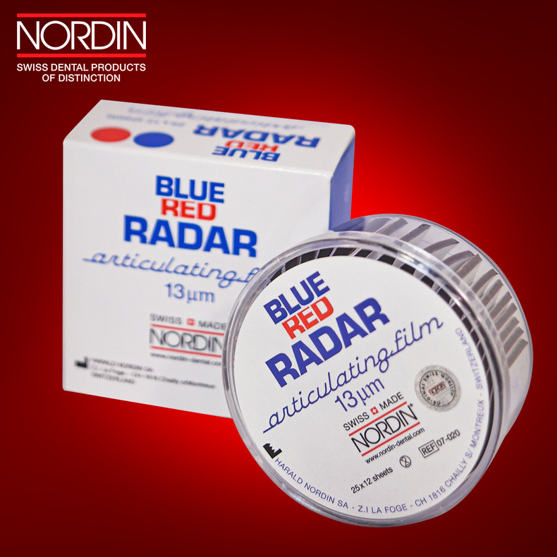 1977년 스위스에 설립된 NORDIN 사의 레이더 필름은 고품질 스위스제 교합지로, 기존 교합지와 달리 물기가 묻어도 교합 채득 가능한 특수잉크로 제작됐다. 바세린을 바를 필요 없이 지르코니아 보철에 잘 찍혀 임상의들 사이에서 인기가 높은 제품이다. 이를 증명하듯 프로덴티 레이더 필름은 10월 기준 으로 지난해 판매량의 80%를 이미 넘어섰다.